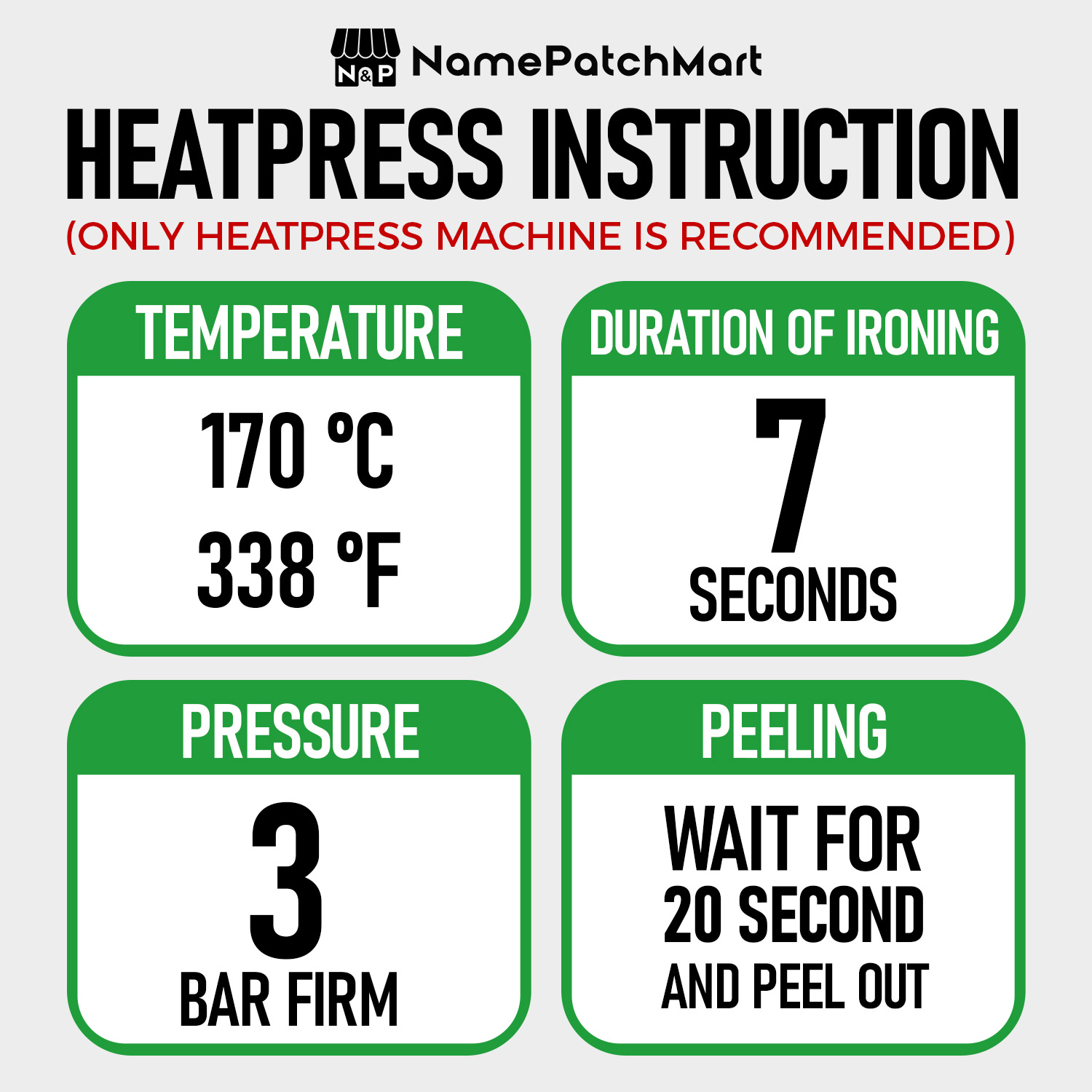 HEATPRESS INSTRUCTIONS:
